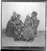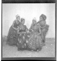 100. EAP449/2/25/100 Reference (shelfmark): EAP449/2/25/100 Title: Four girls wearing dresses and head wraps, three wearing necklaces; two sitting in profile and two leaning over in profile in the studio. Collection Area: Endangered Archives Programme Languages: Not applicable Date Range: 2nd half od the 20th century Extent: 1 TIFF image