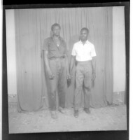 102. EAP449/2/25/102 Reference (shelfmark): EAP449/2/25/102 Title: Two men wearing shirts and pants both standing in profile in the studio. Collection Area: Endangered Archives Programme Languages: Not applicable Date Range: 2nd half od the 20th century Extent: 1 TIFF image