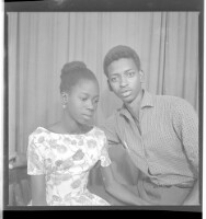 104. EAP449/2/25/104 Reference (shelfmark): EAP449/2/25/104 Title: A man wearing a shirt sitting face-forward next to a girl wearing a dress sitting in profile in the studio. Collection Area: Endangered Archives Programme Languages: Not applicable Date Range: 2nd half od the 20th century Extent: 1 TIFF image