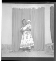 106. EAP449/2/25/106 Reference (shelfmark): EAP449/2/25/106 Title: A woman wearing a dress, head wrap, and necklace holding a baby in arms standing in profile in the studio. Collection Area: Endangered Archives Programme Languages: Not applicable Date Range: 2nd half od the 20th century Extent: 1 TIFF image