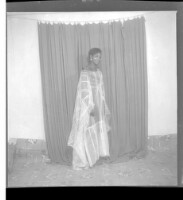 107. EAP449/2/25/107 Reference (shelfmark): EAP449/2/25/107 Title: A woman wearing a dress standing in profile in the studio. Collection Area: Endangered Archives Programme Languages: Not applicable Date Range: 2nd half od the 20th century Extent: 1 TIFF image