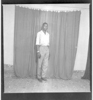109. EAP449/2/25/109 Reference (shelfmark): EAP449/2/25/109 Title: A man wearing a shirt and pants standing in profile in the studio. Collection Area: Endangered Archives Programme Languages: Not applicable Date Range: 2nd half od the 20th century Extent: 1 TIFF image