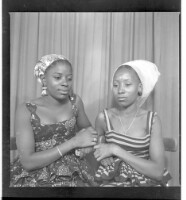 110. EAP449/2/25/110 Reference (shelfmark): EAP449/2/25/110 Title: Two girls wearing dresses and head wraps sitting in profile in the studio. Collection Area: Endangered Archives Programme Languages: Not applicable Date Range: 2nd half od the 20th century Extent: 1 TIFF image