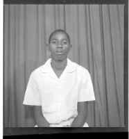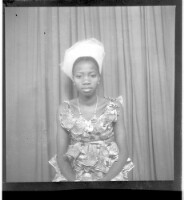 161. EAP449/2/25/161 Reference (shelfmark): EAP449/2/25/161 Title: A girl wearing a dress, head wrap, and necklace sitting face-forward in the studio. Collection Area: Endangered Archives Programme Languages: Not applicable Date Range: 2nd half od the 20th century Extent: 1 TIFF image