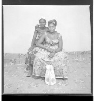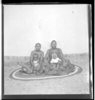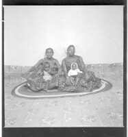 166. EAP449/2/25/166 Reference (shelfmark): EAP449/2/25/166 Title: Two women wearing dresses and head wraps both holding a baby in their laps, one sitting face-forward and the other sitting in profile in the studio. Collection Area: Endangered Archives Programme Languages: Not applicable Date Range: 2nd half od the 20th century Extent: 1 TIFF image