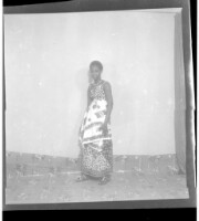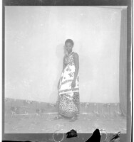 165. EAP449/2/25/165 Reference (shelfmark): EAP449/2/25/165 Title: A girl wearing a dress and necklace standing in profile in the studio. Collection Area: Endangered Archives Programme Languages: Not applicable Date Range: 2nd half od the 20th century Extent: 1 TIFF image