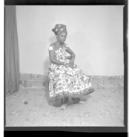 180. EAP449/2/25/180 Reference (shelfmark): EAP449/2/25/180 Title: A girl wearing a dress, head wrap, and necklace sitting in profile in the studio. Collection Area: Endangered Archives Programme Languages: Not applicable Date Range: 2nd half od the 20th century Extent: 1 TIFF image