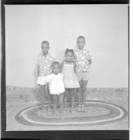 201. EAP449/2/25/201 Reference (shelfmark): EAP449/2/25/201 Title: Two boys wearing shirts and shorts standing face-forward next to two little girls wearing dresses standing, one in profile and the other face-forward in the studio. Collection Area: Endangered Archives Programme Languages: Not applicable Date Range: 2nd half od the 20th century Extent: 1 TIFF image