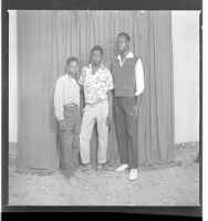 202. EAP449/2/25/202 Reference (shelfmark): EAP449/2/25/202 Title: Three boys wearing shirts and pants all standing, one face-forward and two in profile, in the studio. Collection Area: Endangered Archives Programme Languages: Not applicable Date Range: 2nd half od the 20th century Extent: 1 TIFF image