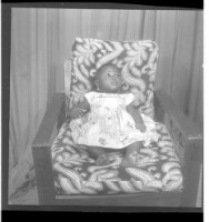 203. EAP449/2/25/203 Reference (shelfmark): EAP449/2/25/203 Title: A little girl wearing a dress sitting in profile on a chair in the studio. Collection Area: Endangered Archives Programme Languages: Not applicable Date Range: 2nd half od the 20th century Extent: 1 TIFF image