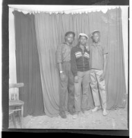 210. EAP449/2/25/210 Reference (shelfmark): EAP449/2/25/210 Title: Three men wearing shirts, pants, and hats standing in profile in the studio. Collection Area: Endangered Archives Programme Languages: Not applicable Date Range: 2nd half od the 20th century Extent: 1 TIFF image