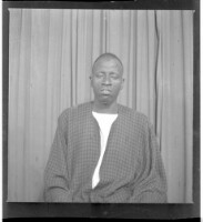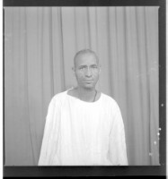 271. EAP449/2/25/271 Reference (shelfmark): EAP449/2/25/271 Title: A man wearing a boubou sitting face-forward in the studio. Collection Area: Endangered Archives Programme Languages: Not applicable Date Range: 2nd half od the 20th century Extent: 1 TIFF image