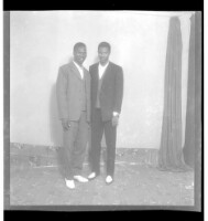 274. EAP449/2/25/274 Reference (shelfmark): EAP449/2/25/274 Title: Two men wearing suits both standing, one face-forward and the other in profile in the studio. Collection Area: Endangered Archives Programme Languages: Not applicable Date Range: 2nd half od the 20th century Extent: 1 TIFF image