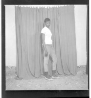 275. EAP449/2/25/275 Reference (shelfmark): EAP449/2/25/275 Title: A girl wearing a t-shirt and pants standing in profile in the studio. Collection Area: Endangered Archives Programme Languages: Not applicable Date Range: 2nd half od the 20th century Extent: 1 TIFF image