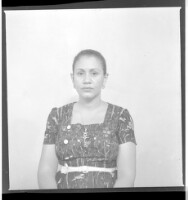 279. EAP449/2/25/279 Reference (shelfmark): EAP449/2/25/279 Title: A woman wearing a dress and necklace sitting face-forward in the studio. Collection Area: Endangered Archives Programme Languages: Not applicable Date Range: 2nd half od the 20th century Extent: 1 TIFF image