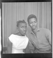 280. EAP449/2/25/280 Reference (shelfmark): EAP449/2/25/280 Title: A man wearing a shirt sitting face-forward next to a girl wearing a dress sitting in profile in the studio. Collection Area: Endangered Archives Programme Languages: Not applicable Date Range: 2nd half od the 20th century Extent: 1 TIFF image