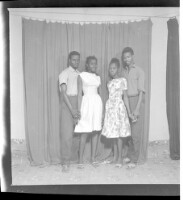 281. EAP449/2/25/281 Reference (shelfmark): EAP449/2/25/281 Title: Two men wearing shirts and pants next to two girls wearing dresses all standing in profile in the studio. Collection Area: Endangered Archives Programme Languages: Not applicable Date Range: 2nd half od the 20th century Extent: 1 TIFF image