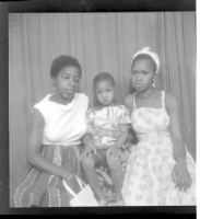 282. EAP449/2/25/282 Reference (shelfmark): EAP449/2/25/282 Title: A little boy wearing a shirt sitting face-forward between two women, one wearing a dress, head wrap, and necklace and the other wearing a dress and skirt, both sitting in profile in the studio. Collection Area: Endangered Archives Programme Languages: Not applicable Date Range: 2nd half od the 20th century Extent: 1 TIFF image