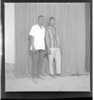 284. EAP449/2/25/284 Reference (shelfmark): EAP449/2/25/284 Title: Two boys wearing shirts and pants, one in glasses, both standing in profile in the studio. Collection Area: Endangered Archives Programme Languages: Not applicable Date Range: 2nd half od the 20th century Extent: 1 TIFF image