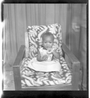 288. EAP449/2/25/288 Reference (shelfmark): EAP449/2/25/288 Title: A little girl wearing a dress sitting face-forward on a chair in the studio. Collection Area: Endangered Archives Programme Languages: Not applicable Date Range: 2nd half od the 20th century Extent: 1 TIFF image