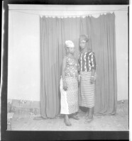 352. EAP449/2/25/352 Reference (shelfmark): EAP449/2/25/352 Title: Two women wearing dresses, pagnes, and head wraps standing face-forward in the studio. Collection Area: Endangered Archives Programme Languages: Not applicable Date Range: 2nd half od the 20th century Extent: 1 TIFF image