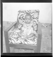 383. EAP449/2/25/383 Reference (shelfmark): EAP449/2/25/383 Title: A little girl wearing a dress and necklace sitting face-forward in the studio. Collection Area: Endangered Archives Programme Languages: Not applicable Date Range: 2nd half od the 20th century Extent: 1 TIFF image