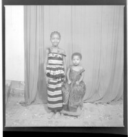 386. EAP449/2/25/386 Reference (shelfmark): EAP449/2/25/386 Title: Two girl wearing dresses, one in a head wrap, both standing in profile in the studio. Collection Area: Endangered Archives Programme Languages: Not applicable Date Range: 2nd half od the 20th century Extent: 1 TIFF image