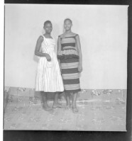81. EAP449/2/25/81 Reference (shelfmark): EAP449/2/25/81 Title: Two girls wearing dresses, one in wearing a necklace and the other wearing a head wrap, both standing in profile in the studio. Collection Area: Endangered Archives Programme Languages: Not applicable Date Range: 2nd half od the 20th century Extent: 1 TIFF image