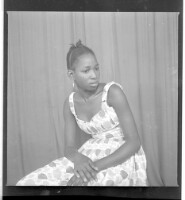 83. EAP449/2/25/83 Reference (shelfmark): EAP449/2/25/83 Title: A girl wearing a dress and necklace sitting face-forward in the studio. Collection Area: Endangered Archives Programme Languages: Not applicable Date Range: 2nd half od the 20th century Extent: 1 TIFF image