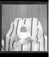 96. EAP449/2/26/96 Reference (shelfmark): EAP449/2/26/96 Title: A baby with light skin laying on a chair wearing all white, face-forward in the studio. Collection Area: Endangered Archives Programme Languages: Not applicable Date Range: 2nd half od the 20th century Extent: 1 TIFF image