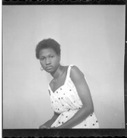 92. EAP449/2/26/92 Reference (shelfmark): EAP449/2/26/92 Title: A young girl wearing a dress and earrings with her hair styled, sitting in profile and smiling in the studio. Collection Area: Endangered Archives Programme Languages: Not applicable Date Range: 2nd half od the 20th century Extent: 1 TIFF image