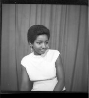 186. EAP449/2/26/186 Reference (shelfmark): EAP449/2/26/186 Title: A young girl wearing a white t-shirt and earrings smiling and sitting in profile in the studio. Collection Area: Endangered Archives Programme Languages: Not applicable Date Range: 2nd half od the 20th century Extent: 1 TIFF image
