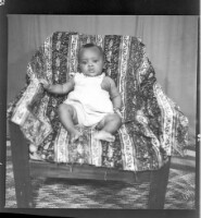 262. EAP449/2/26/262 Reference (shelfmark): EAP449/2/26/262 Title: A baby laying face-forward on a chair and a black pagne wearing all white in the studio. Collection Area: Endangered Archives Programme Languages: Not applicable Date Range: 2nd half od the 20th century Extent: 1 TIFF image