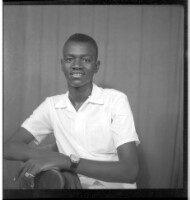 265. EAP449/2/26/265 Reference (shelfmark): EAP449/2/26/265 Title: A man wearing a white short-sleeved shirt, a watch, and two rings sitting face-forward and smiling in the studio. Collection Area: Endangered Archives Programme Languages: Not applicable Date Range: 2nd half od the 20th century Extent: 1 TIFF image