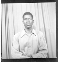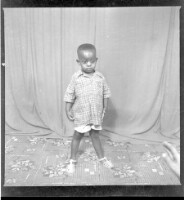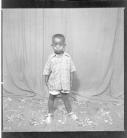 268. EAP449/2/26/268 Reference (shelfmark): EAP449/2/26/268 Title: A little boy wearing a grey shirt and white shorts standing face-forward in the studio. Collection Area: Endangered Archives Programme Languages: Not applicable Date Range: 2nd half od the 20th century Extent: 1 TIFF image