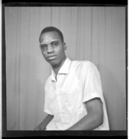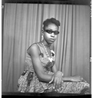 35. EAP449/2/26/35 Reference (shelfmark): EAP449/2/26/35 Title: A young man sitting wearing a camisole, pagne, necklaces, glasses, and arms crossed in the studio. Collection Area: Endangered Archives Programme Languages: Not applicable Date Range: 2nd half od the 20th century Extent: 1 TIFF image