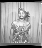 37. EAP449/2/26/37 Reference (shelfmark): EAP449/2/26/37 Title: Full shot of a woman sitting wearing a white boubou and black headscarf, earrings, necklaces, and with arms crossed in the studio. Collection Area: Endangered Archives Programme Languages: Not applicable Date Range: 2nd half od the 20th century Extent: 1 TIFF image