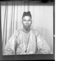 440. EAP449/2/26/440 Reference (shelfmark): EAP449/2/26/440 Title: A man wearing a large white boubou sitting face-forward in the studio. Collection Area: Endangered Archives Programme Languages: Not applicable Date Range: 2nd half od the 20th century Extent: 1 TIFF image