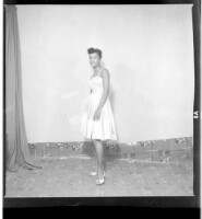 437. EAP449/2/26/437 Reference (shelfmark): EAP449/2/26/437 Title: A young girl wearing a white dress, earrings, and a watch with her hair styled standing in profile in the studio. Collection Area: Endangered Archives Programme Languages: Not applicable Date Range: 2nd half od the 20th century Extent: 1 TIFF image