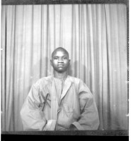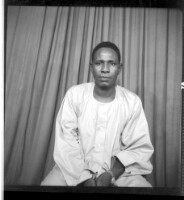 438. EAP449/2/26/438 Reference (shelfmark): EAP449/2/26/438 Title: A young man wearing a large black boubou sitting face-forward in the studio. Collection Area: Endangered Archives Programme Languages: Not applicable Date Range: 2nd half od the 20th century Extent: 1 TIFF image