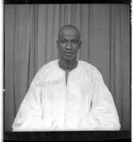 439. EAP449/2/26/439 Reference (shelfmark): EAP449/2/26/439 Title: A man wearing a large white boubou sitting face-forward in the studio. Collection Area: Endangered Archives Programme Languages: Not applicable Date Range: 2nd half od the 20th century Extent: 1 TIFF image