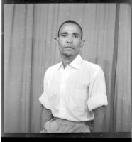 445. EAP449/2/26/445 Reference (shelfmark): EAP449/2/26/445 Title: A young man wearing a black shirt sitting face-forward in the studio. Collection Area: Endangered Archives Programme Languages: Not applicable Date Range: 2nd half od the 20th century Extent: 1 TIFF image