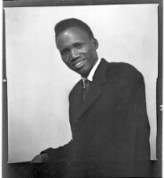 450. EAP449/2/26/450 Reference (shelfmark): EAP449/2/26/450 Title: A man wearing a white long-sleeved shirt and black suit sitting in profile and smiling in the studio. Collection Area: Endangered Archives Programme Languages: Not applicable Date Range: 2nd half od the 20th century Extent: 1 TIFF image
