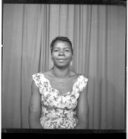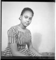 492. EAP449/2/26/492 Reference (shelfmark): EAP449/2/26/492 Title: A woman wearing a camisole, head wrap, and earrings with her hair styled sitting face-forward in the studio. Collection Area: Endangered Archives Programme Languages: Not applicable Date Range: 2nd half od the 20th century Extent: 1 TIFF image
