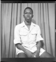 493. EAP449/2/26/493 Reference (shelfmark): EAP449/2/26/493 Title: A man wearing a white short-sleeved shirt sitting face-forward in the studio. Collection Area: Endangered Archives Programme Languages: Not applicable Date Range: 2nd half od the 20th century Extent: 1 TIFF image
