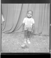 495. EAP449/2/26/495 Reference (shelfmark): EAP449/2/26/495 Title: A little boy wearing a t-shirt and shorts standing face-forward with a ball in the studio. Collection Area: Endangered Archives Programme Languages: Not applicable Date Range: 2nd half od the 20th century Extent: 1 TIFF image