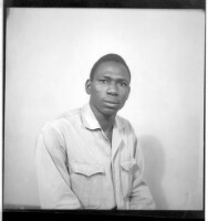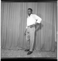 498. EAP449/2/26/498 Reference (shelfmark): EAP449/2/26/498 Title: A man wearing a white long-sleeved shirt, a watch, and black shoes standing in profile in the studio. Collection Area: Endangered Archives Programme Languages: Not applicable Date Range: 2nd half od the 20th century Extent: 1 TIFF image