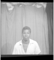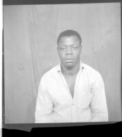 Full shot of three people, on the right a white woman wearing a shirt and skirt, arm on her hip, and a young black man wearing a white long sleeved shirt, white pants, and grey shoes, in the middle a little white boy wearing a white long sleeved shirt and