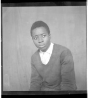143. EAP449/2/27/143 Reference (shelfmark): EAP449/2/27/143 Title: A man sitting wearing a white shirt and black long sleeved sweater in profile in the studio. Collection Area: Endangered Archives Programme Languages: Not applicable Date Range: 2nd half od the 20th century Extent: 1 TIFF image