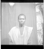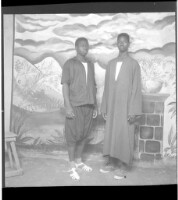 147. EAP449/2/27/147 Reference (shelfmark): EAP449/2/27/147 Title: Two men standing on the right wearing a white shirt and black pants and on the left wearing a black boubou in the studio. Collection Area: Endangered Archives Programme Languages: Not applicable Date Range: 2nd half od the 20th century Extent: 1 TIFF image